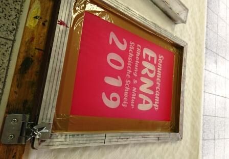 Bereits zum 2. Mal besucht Herr Prades, Arbeitstherapeut in Sebnitz, mit 3 Klienten das Kinder- und Jugenddorf ERNA in Papstdorf. Das Auto ist mit Siebdrucktechnik vollgeladen und schnell wird alles im Gemeinschaftsraum aufgebaut. Nun noch die T-Shirts sortiert nach Farben und Größen auf einen Tisch auslegen.