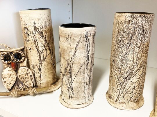 aus Keramik, Grasmotiv, einzigartige Herstellung, Besonderheit: Druck mit Gräsern, handgetöpfert
